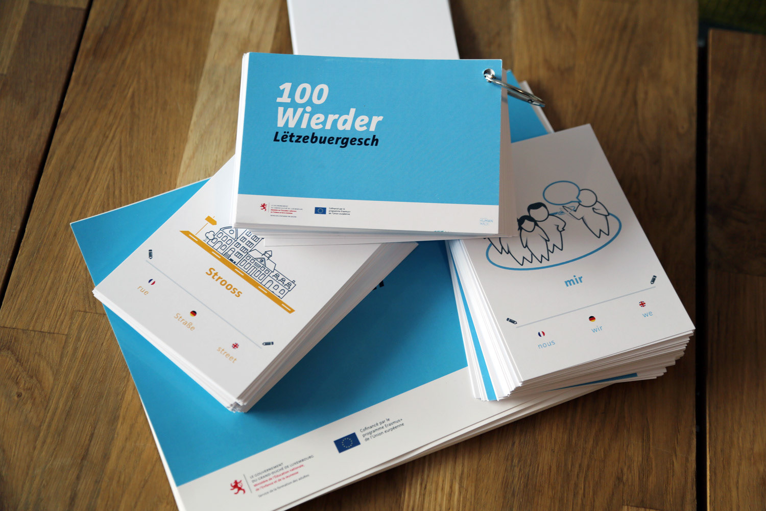 The 100 Wierder Lëtzebuergesch tool was created for Min. of Integration to enable the refugees to have contact with the Luxembourgish local population and make it more easy to integrate the educational system in Luxembourg. The approach is: Multilingual, highlighting the Luxembourgish language while valuing the other languages of the country as well as the mother tongue of the newcomers, Interactive and playful, allowing to practice the Luxembourgish language. The Adult Education Service uses the 100 Wierder Lëtzebuergesch course material in its classes and makes it available to training organizations, associations and volunteers who mentor and welcome people who want to integrate into Luxembourg