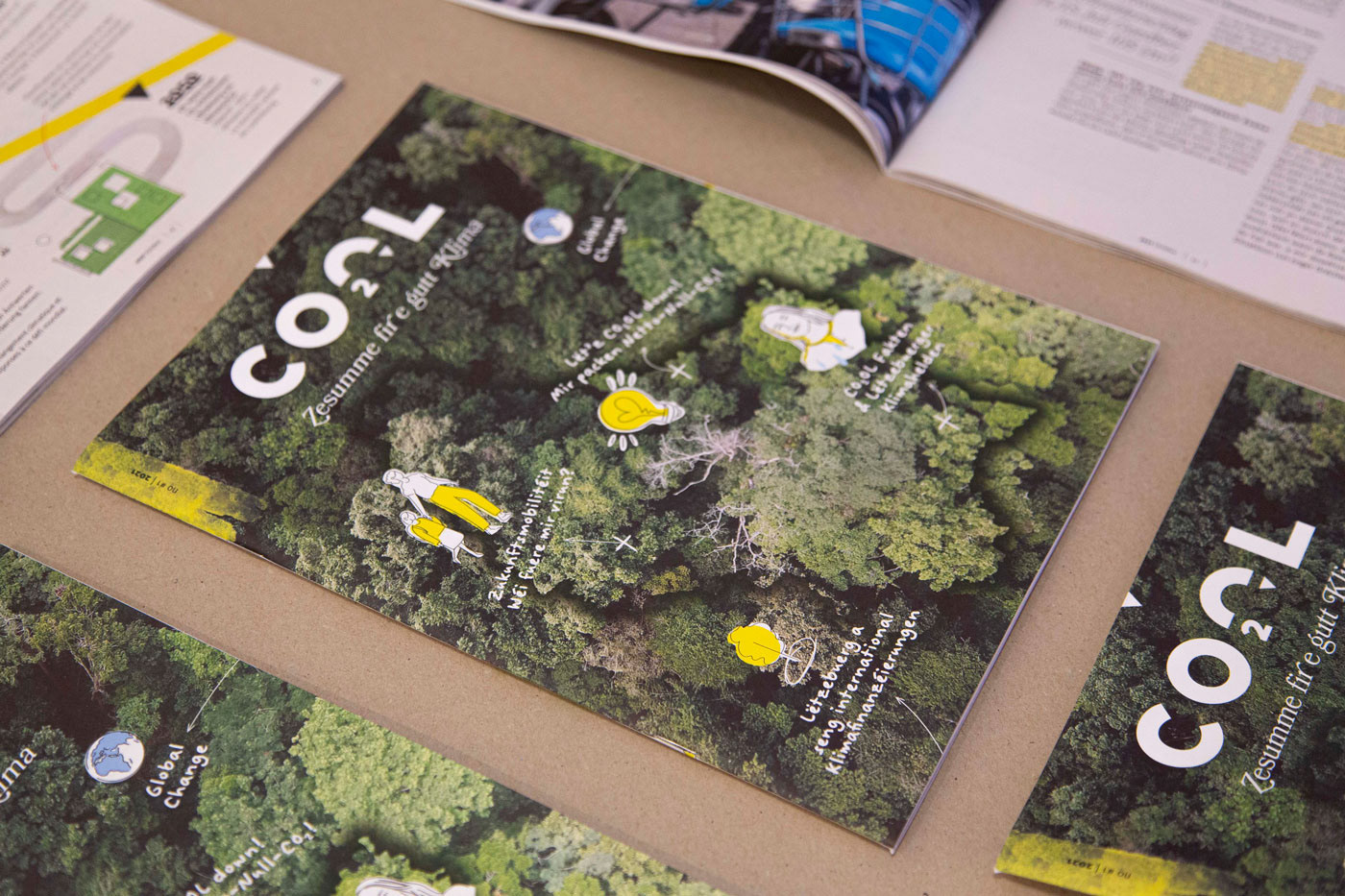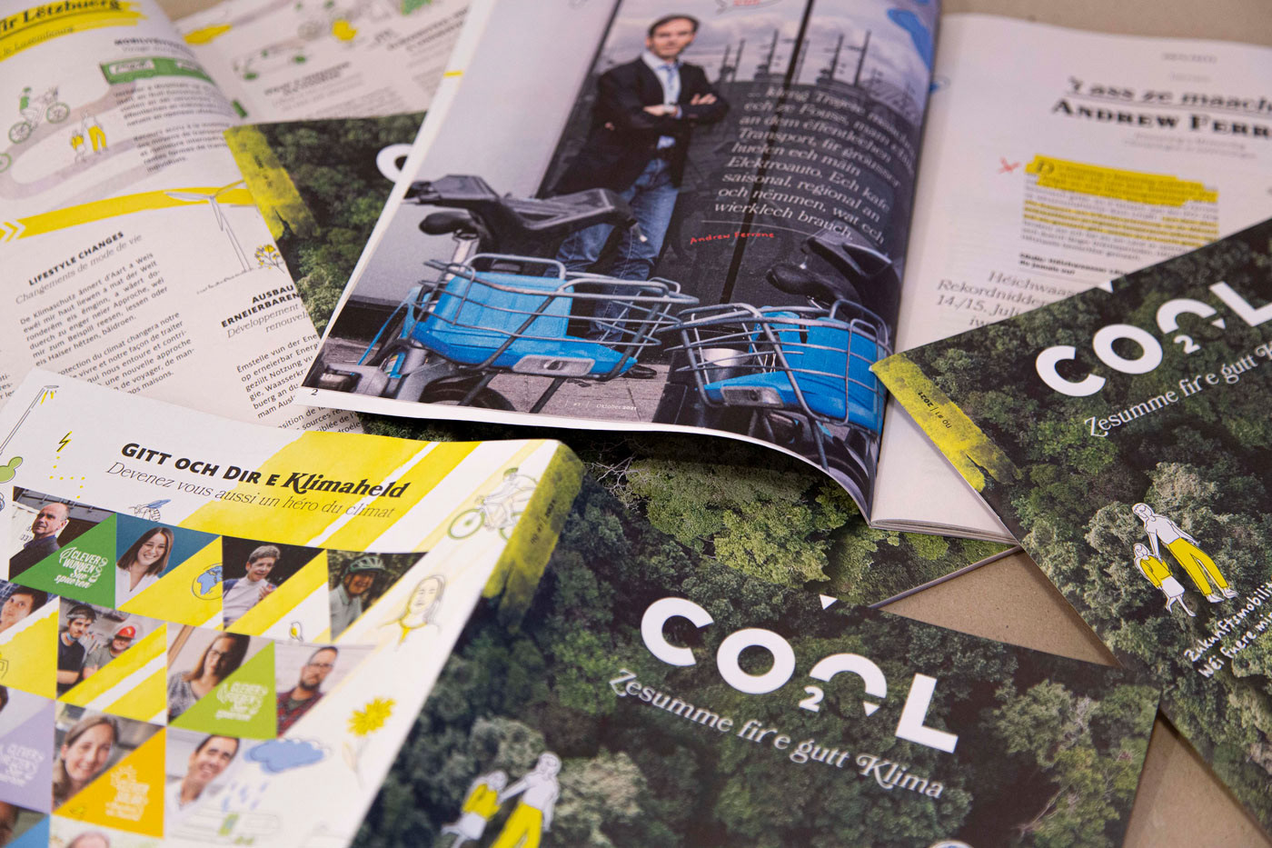 Created for Department of Environment in Luxembourg together with our friends ART&WISE. The goal was to create an attractive and easy-to-understand print magazine with the lowest possible Co2 emission values. Designed and printed in Luxembourg. The whole magazine can be viewed here.