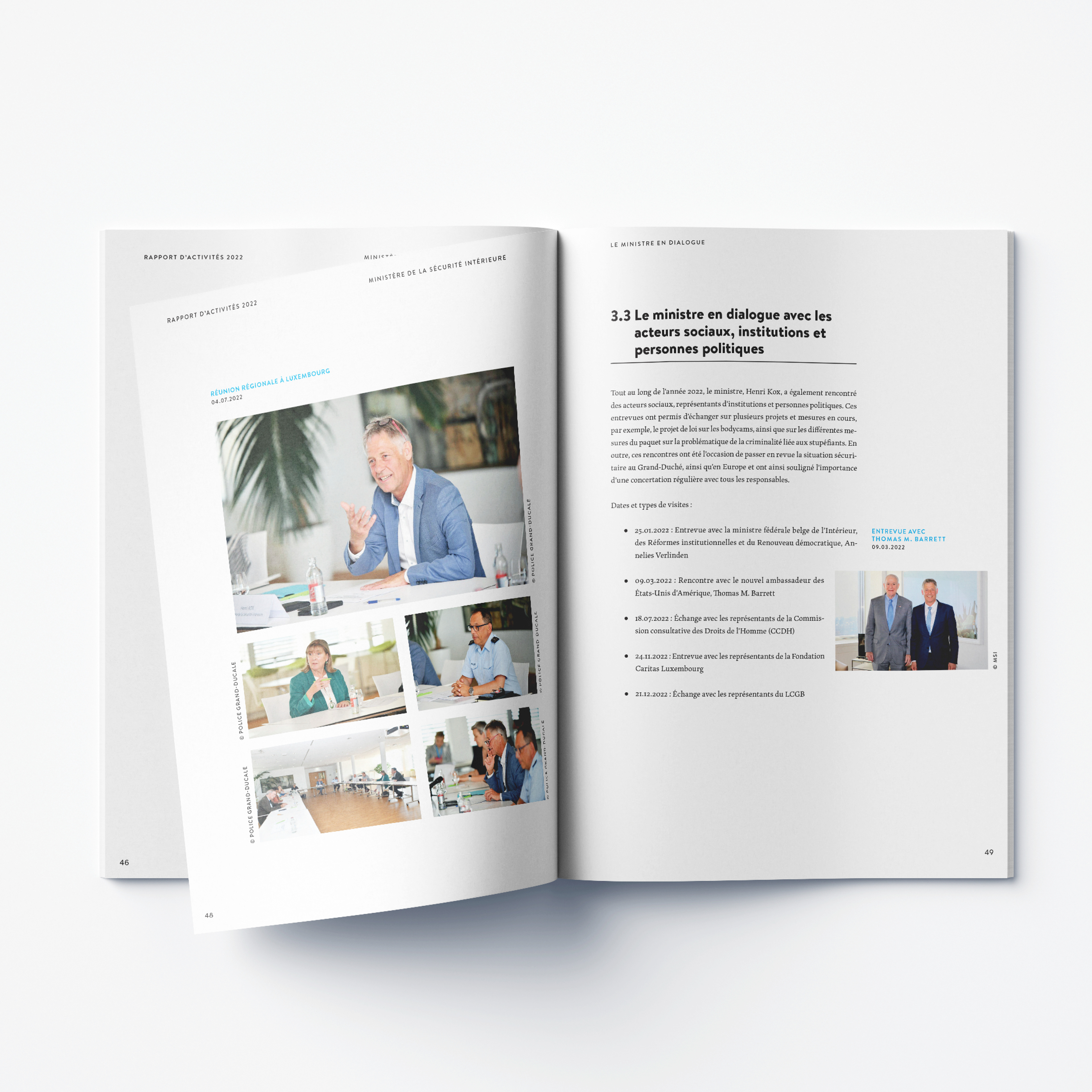 The Department of Homeland Security approached us with the task of redesigning their annual report. The prerequisites were the integration of the nation's branding and its own recognition value. The final result was printed in a small edition and can be viewed digitally at the ministry.