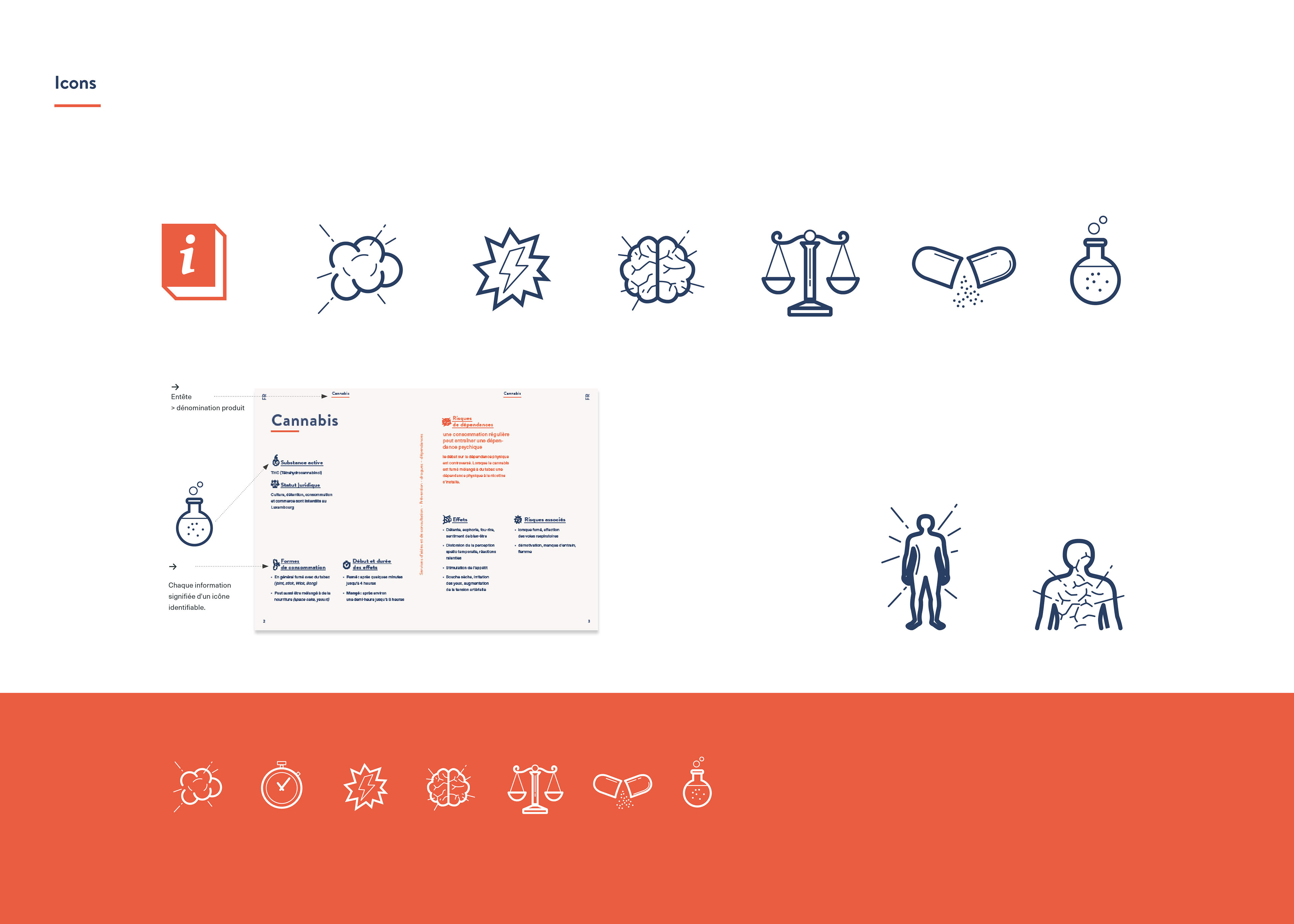 Drogenprävention. Entwicklung eines authentischen und einzigartigen Illustrations- und Piktogrammstiles für "CNAPA", das nationale luxemburgische Zentrum für Drogenprävention "CNAPA - Centre National de Prévention des Addictions".