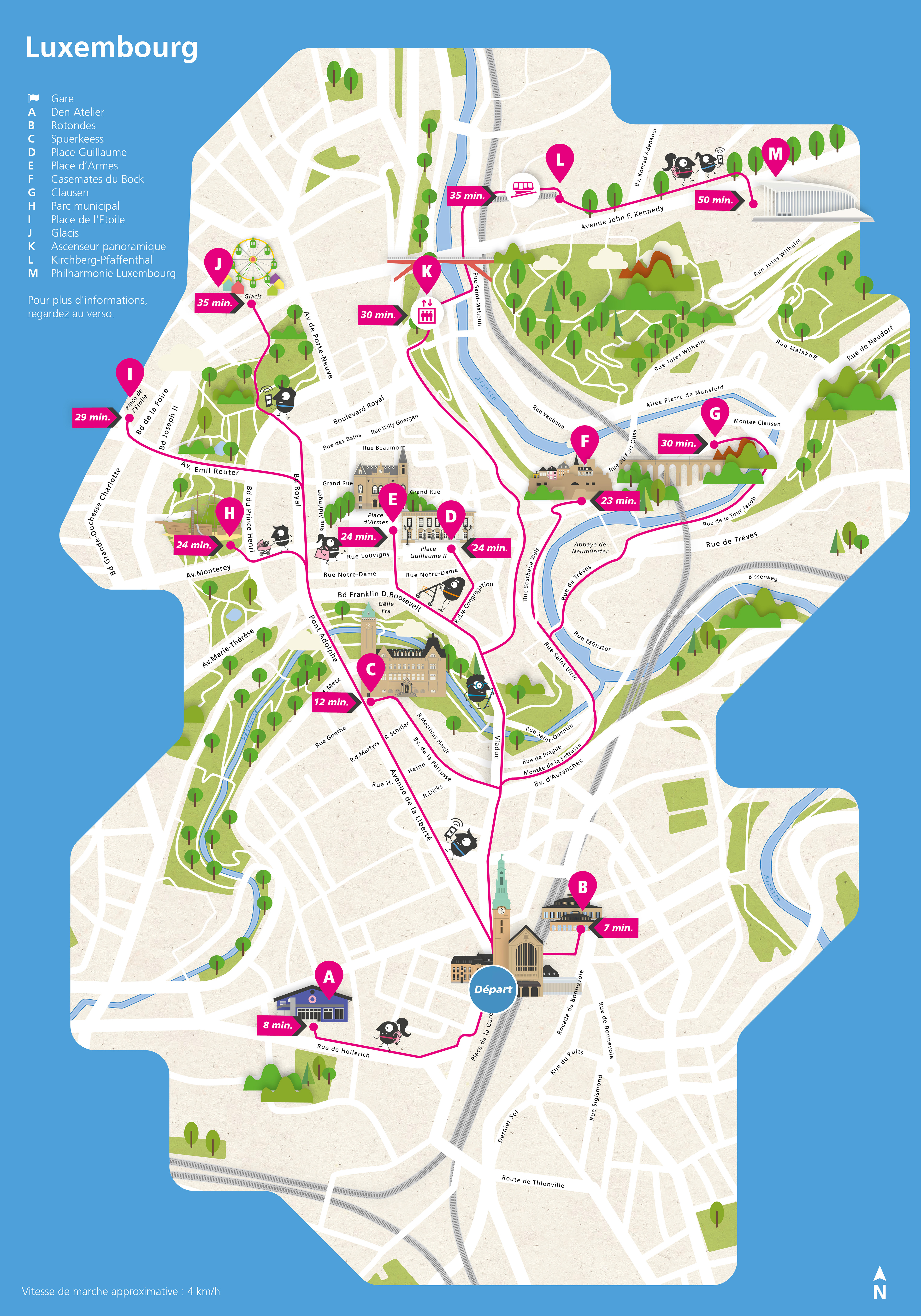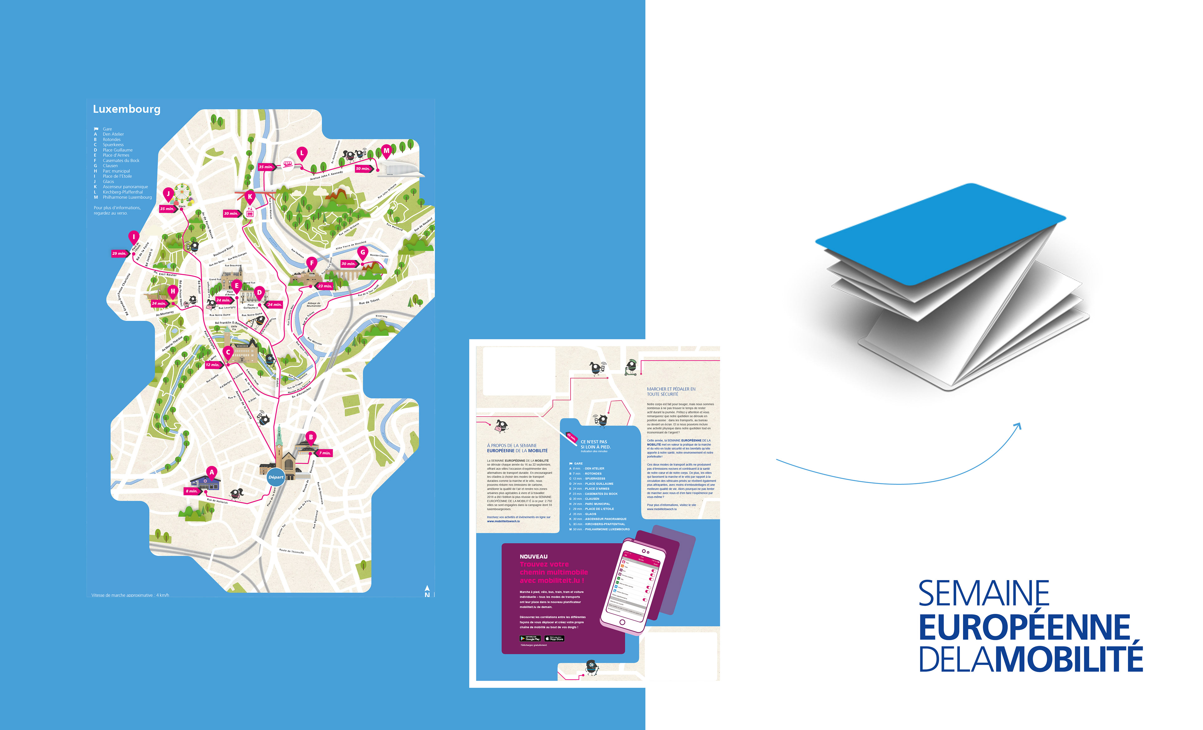 Illustration of a footpath map in the city of Luxembourg for the European Mobility Week.