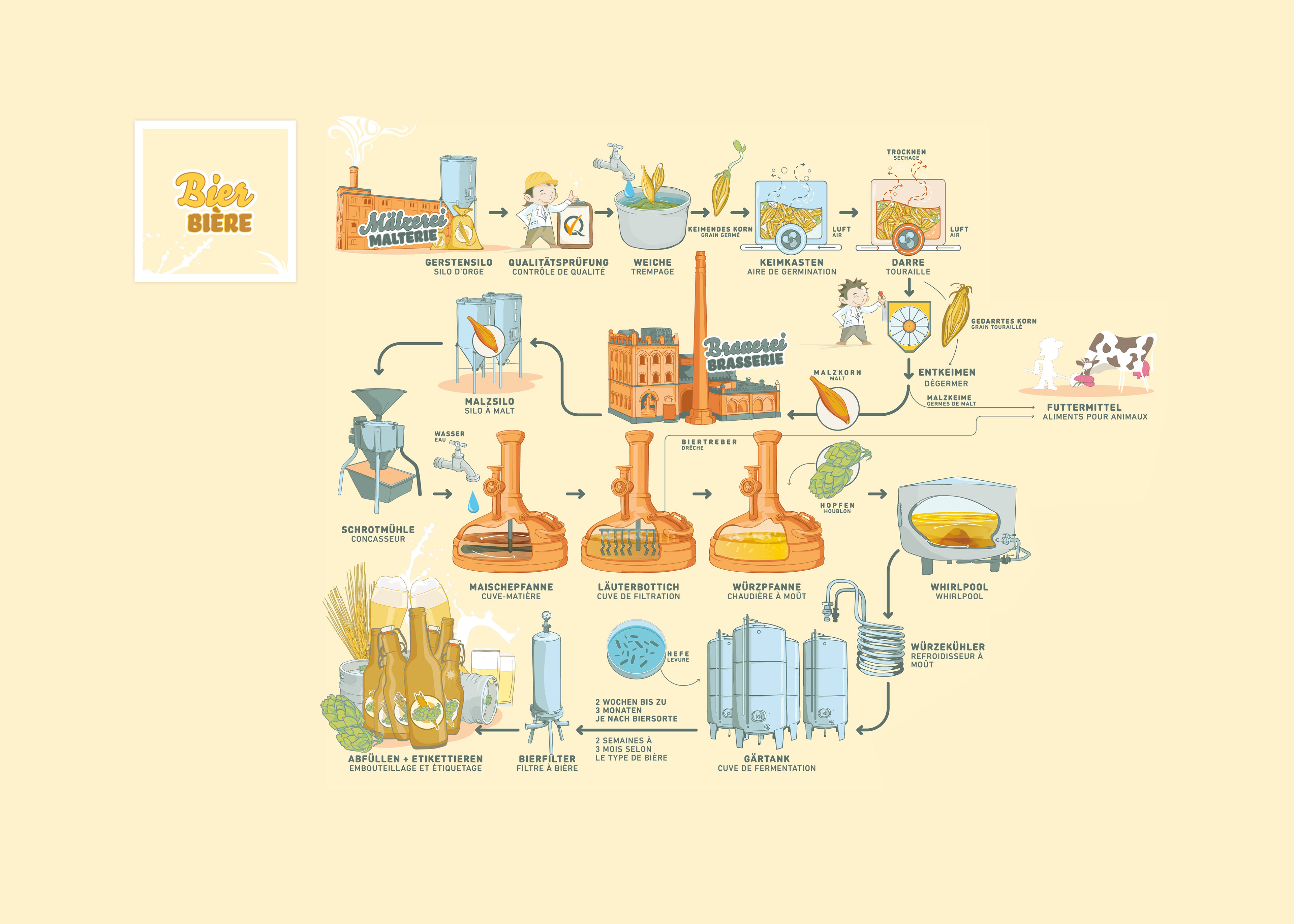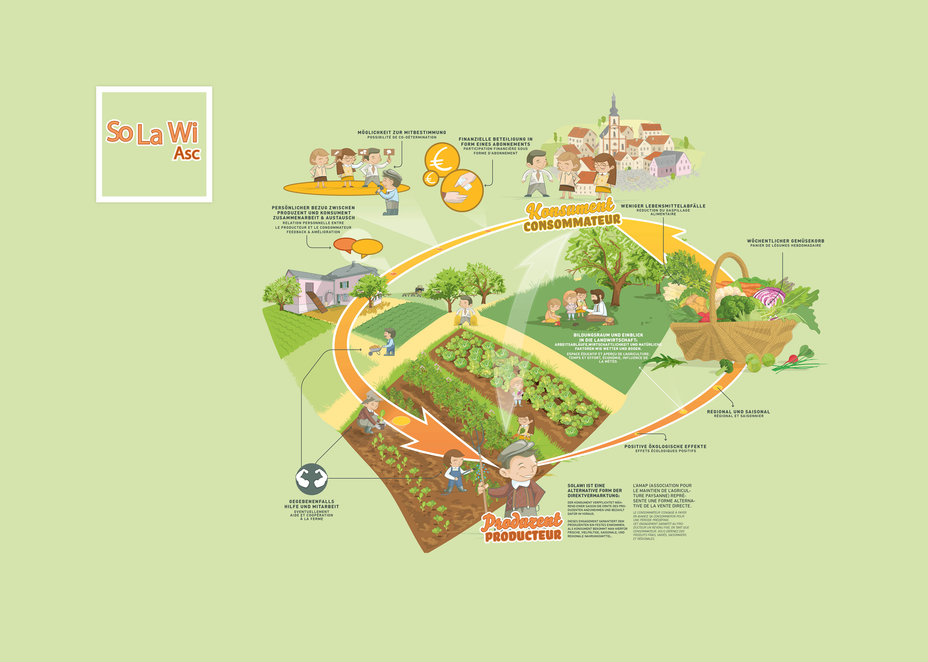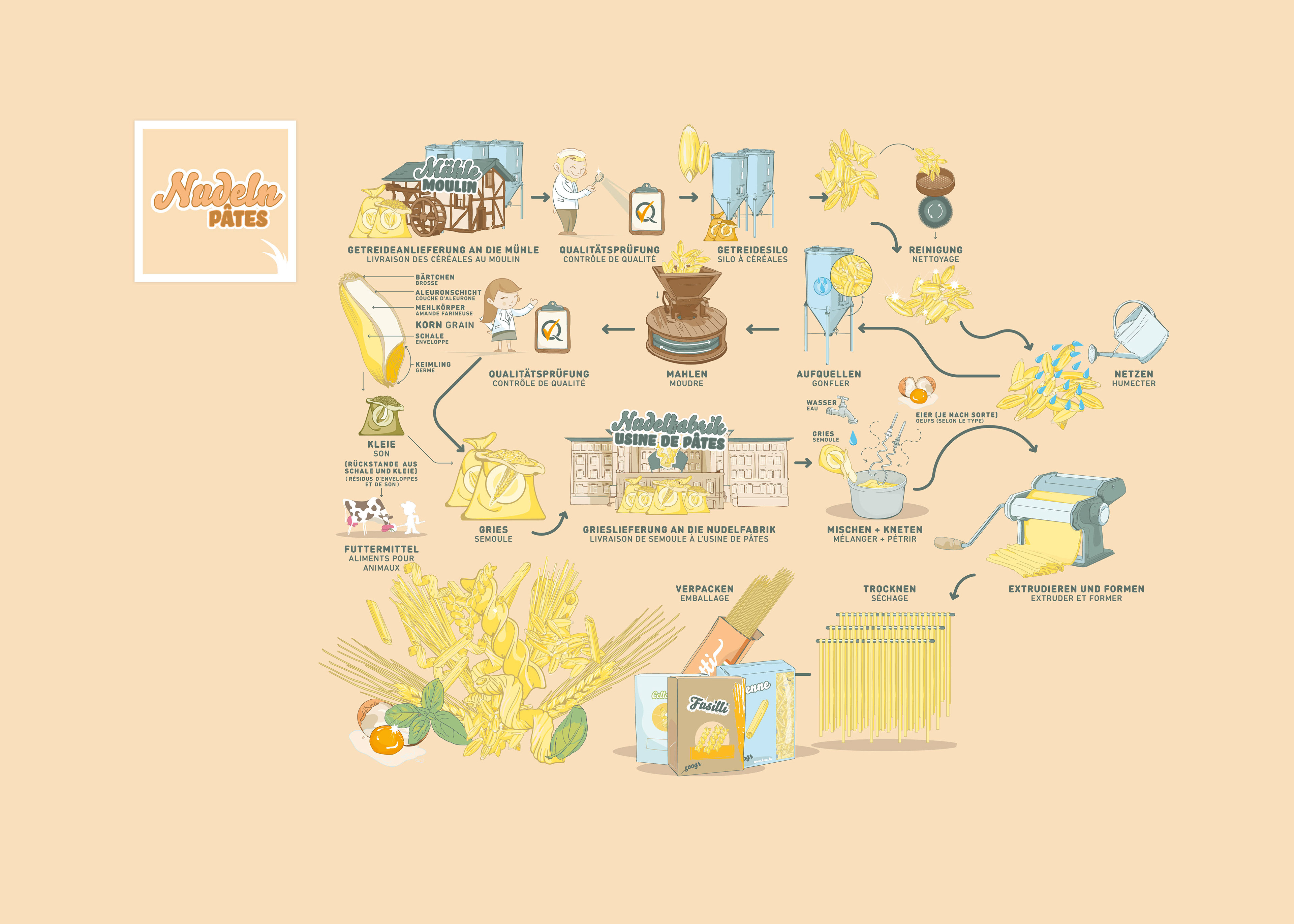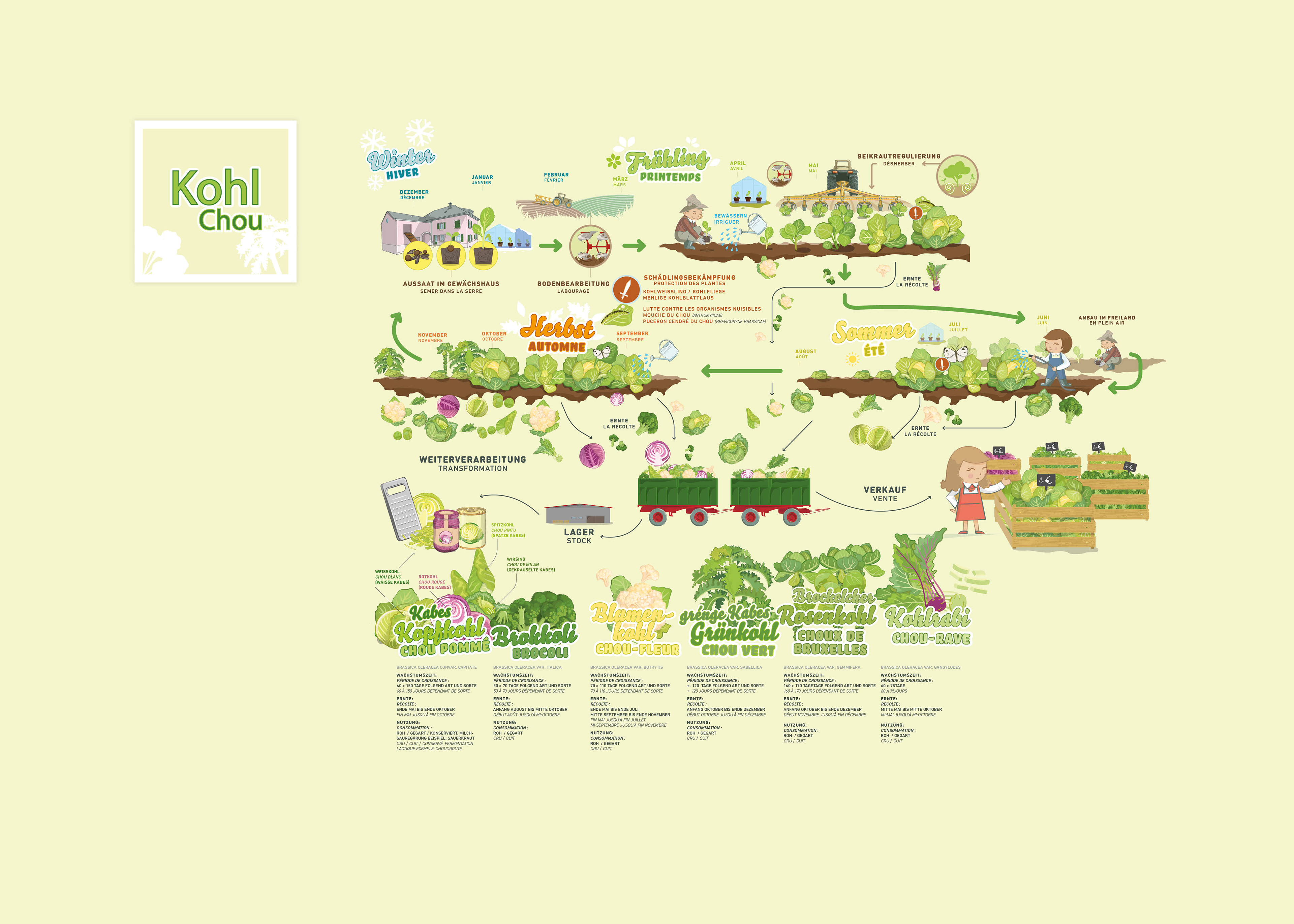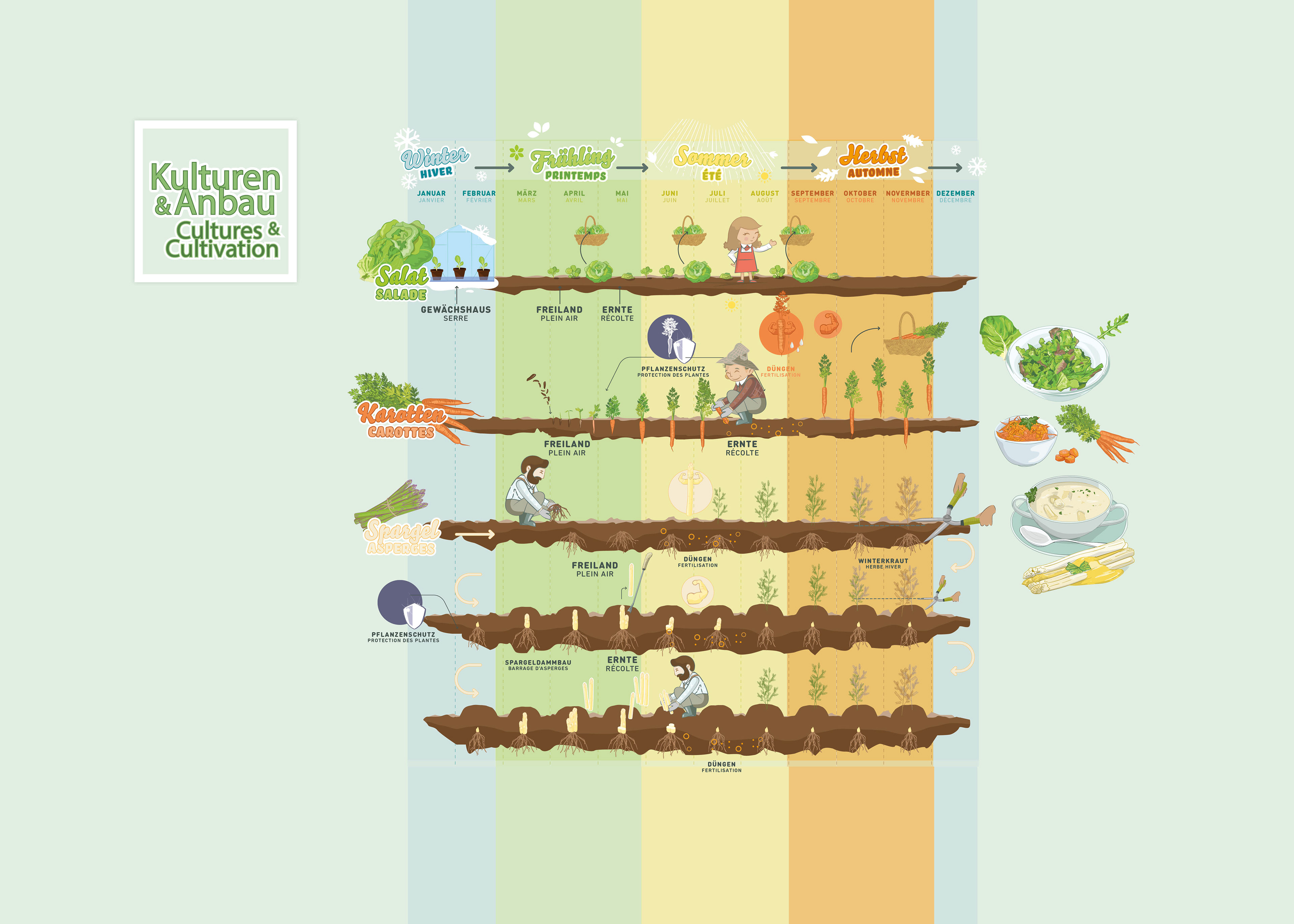 Visualization of different agricultural activities. 10 great information graphics on different topics of agriculture such as pasta production, bread and wheat, vegetable cultivation, solidarity farming...